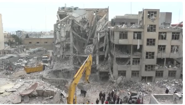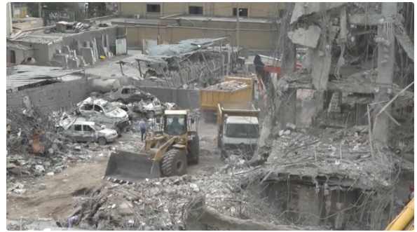 Rubble scatters the ground in the aftermath of a strike in Tehran on March 12. (Reuters)