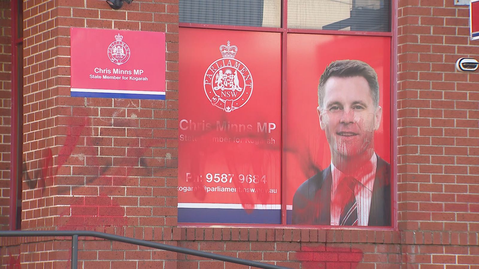 Ua maitauina e le toatele i le asō tusitusiga ua faia i luga o puipui ma ata i le ofisa o le Premier o Niu Sa Uelese, Chris Minns.