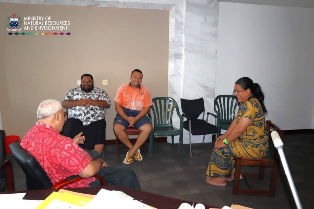 Sa faapea ona faatino se feiloaiga a le Ofisa Sili o Pulega a le Matagaluega o Puna’oa Faalenatura ma le Siosiomaga (MNRE), Lealaisalanoa Frances Debra Brown-Reupena ma le susuga ia Frost Tuā’au ma Ronnie Posini a o lei tuuvaa mai mo Niu Sila.